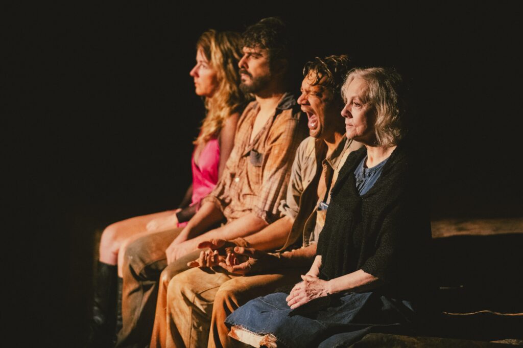 A encenação de Rodrigo Portella aposta em poucos elementos cênicos, com o palco coberto por lama e água, criando uma atmosfera instável que exige entrega física total dos atores e reflete as tensões emocionais dos personagens. “Todo redemoinho que devasta a vida dos que fogem das normas surge no núcleo de suas próprias famílias”, comenta o diretor.